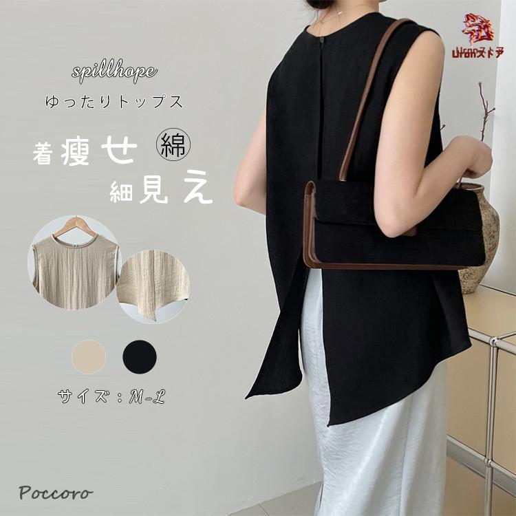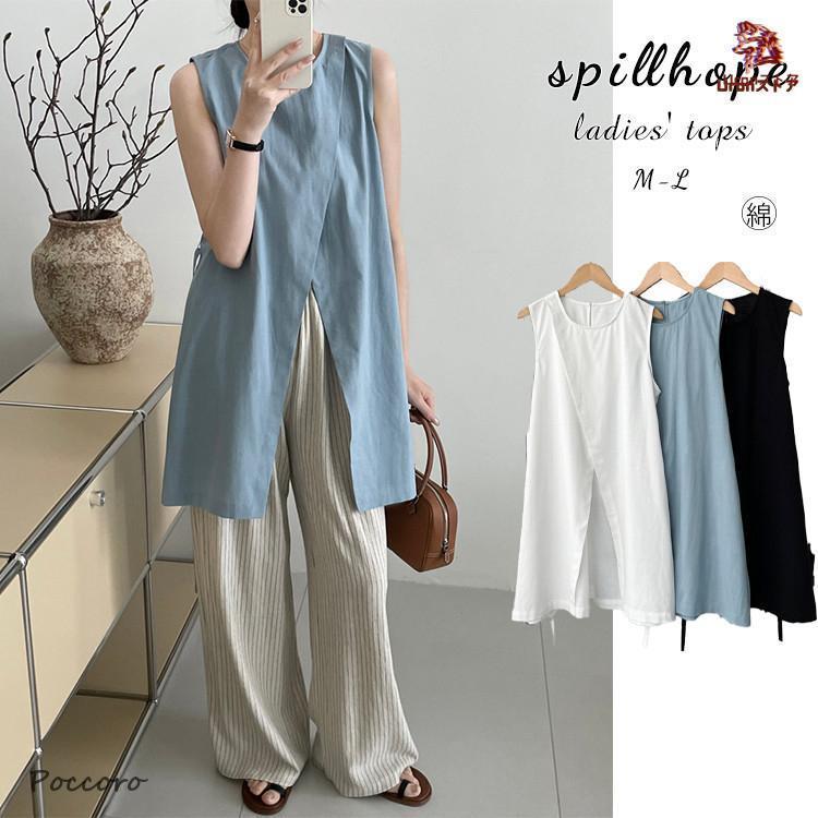 ブラウス レディース トップス 黒 白 ブルー 綿 春 夏 秋 大人 スリット ロングトップ シャツ